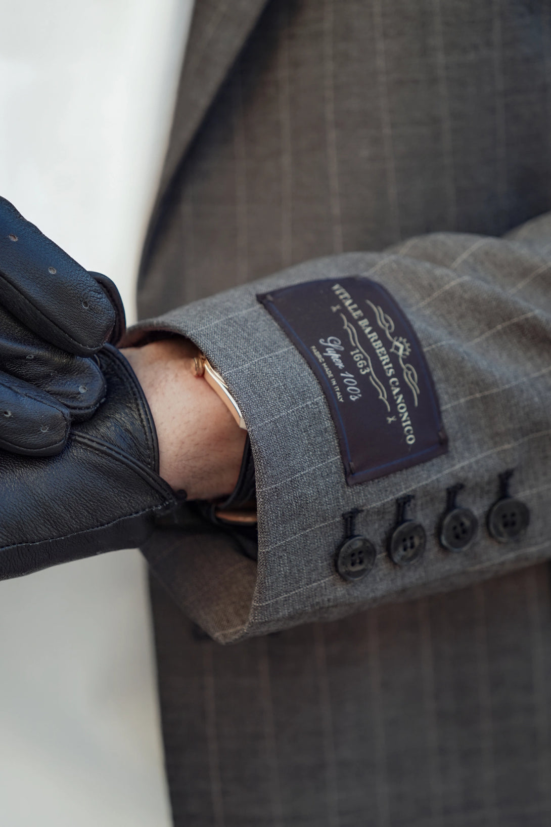 The Limited Edition Gray Pinstripe Skin is made from 100% Vitale Barberis Canonico virgin wool, with a soft, anti-crease feel and a refined gray pinstripe design.